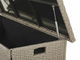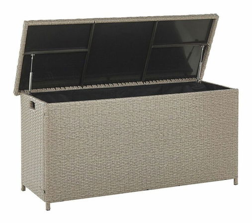 Tento záhradný box je skvelým riešením úložného priestoru. Je dostatočne priestranný a vaše vankúše, vonkajšie náradie, nástroje alebo hračky ochráni pred vonkajšími vplyvmi. Box je vyrobený zo syntetického ratanu a pevného oceľového rámu s práškovým nástrekom. Vnútro je vystlané čiernou vložkou, ktorá chráni obsah boxu pred prachom. Má teleskopický mechanizmus, vďaka ktorému zostane veko nadvihnuté a manipuláciu s boxom uľahčujú bočné rukoväte.