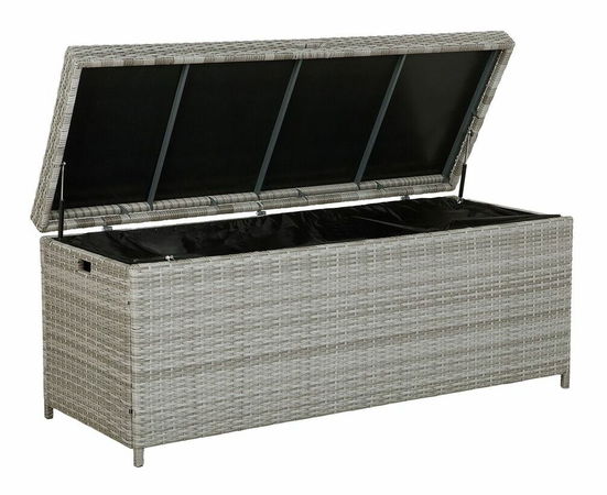 Úložný box - Mintaro (sivá) s výškou 66 cm, šírkou 158 cm a hĺbkou 63 cm je ideálnym riešením pre ukladanie vecí v každej miestnosti vášho domu. Vďaka svojim rozmerným parametrov umožňuje účinné využitie priestoru a poskytuje dostatok úložného miesta pre oblečenie, obuv, posteľnú bielizeň a ďalšie veci. Vnútorný priestor boxu je rozdelený na niekoľko políc a zásuviek, ktoré umožňujú efektívne usporiadanie vecí podľa vašich predstáv. Box je vyrobený z kvalitných materiálov, ktoré mu zaručujú dlhú životnosť a odolnosť proti poškodeniu. Jeho moderný a elegantný dizajn sivé farby dokonale zapadne do akejkoľvek interiérovej zostavy.