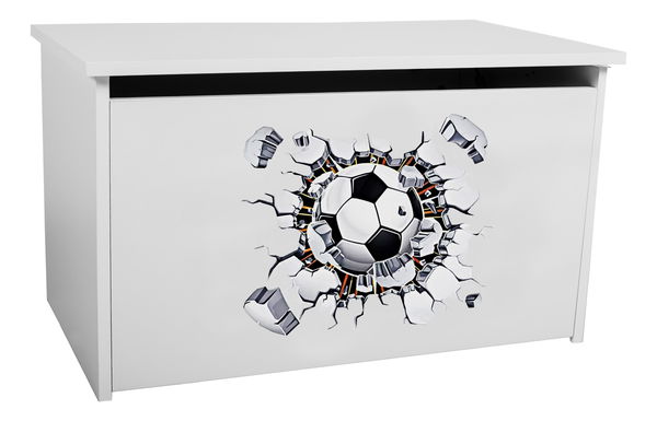 Detský úložný box Davina je ideálnym riešením pre ukladanie hračiek a iných predmetov vašich detí. S výškou 42 cm a hĺbkou 40 cm ponúka dostatok miesta na uskladnenie. Biela farba a futbalová lopta potlačou laminátom robia z neho pekný doplnok do detskej izby. Jeho odolná konštrukcia a bezpečné ovládanie otvárania sú praktické a zabezpečujú hravý a dobre zorganizovaný život vašich detí. Materiálom, ktorý sa použil na výrobu, je laminovaná nábytková doska a otvára sa pomocou plynovej pružiny. Rozmery balíka sú 48x18x80 cm a váži 16 kg. S Davinou bude udržiavanie poriadku v detskej izbe radosťou.