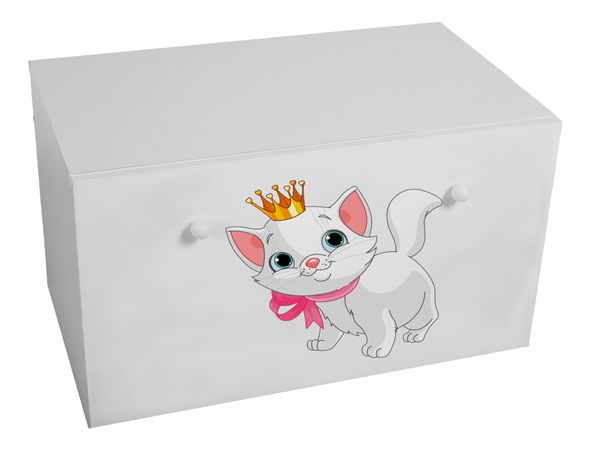 Úložný box pre deti Ione (biela) s výškou 41,6 cm a hĺbkou 41,6 cm je skvelým riešením pre uskladnenie hračiek a ďalších predmetov. Tento detský úložný box má funkčný dizajn a dostatočne veľký priestor, ktorý pomáha udržiavať poriadok v detskej izbe. Má odolnú konštrukciu a bezpečné ovládanie otvárania, čo robí z Ione praktický a esteticky príjemný doplnok pre organizáciu a hravý život detí. Úložný box je vyrobený z laminovanej nábytkovej dosky a otvára sa ako zásuvka. Jeho dizajn zdobí roztomilá mačka s korunou, ktorá je vytlačená UV potlačou laminátom. Rozmery balenia sú 80x18x48 cm/24 kg. S Ione budú deti mať viac miesta na hru a viac času na zábavu.