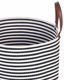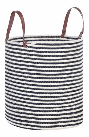 Vďaka tomuto košíku s pruhovaným vzorom bude váš domov čistý a uprataný. Je ručne vyrobený z bavlny a má dve držadlá z umelej kože, vďaka ktorým sa dá chytiť do ruky a preniesť. Môžete ho použiť ako kôš na bielizeň v kúpeľni, úložný priestor na malé vankúše a deky v spálni alebo na hračky v detskej izbe.