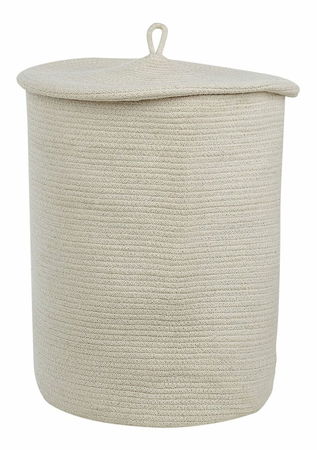 Tento odkladací kôš bude vyzerať dokonale v interiéroch zariadených v boho štýle. Ponúka dostatok úložného priestoru a možno ho použiť na odkladanie dekoratívnych vankúšov a prikrývok, ale využitie nájde aj v kúpeľni, kde ho možno použiť ako kôš na bielizeň. Je vyrobený ručne a má praktické veko v rovnakej farbe. Kôš je vyrobený z bavlny, takže je odolný a ľahko sa čistí.
