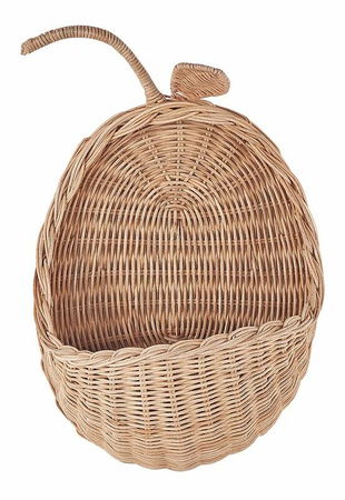 Praktický a dekoratívny odkladací košík sa stane stredobodom akejkoľvek steny, na ktorú ho zavesíte. Roztomilú dekoráciu v tvare jablka si zamilujú deti aj dospelí. Tento košík predstavuje praktický úložný priestor na rôzne hračky či iné doplnky. Je vyrobený z ratanu, vďaka čomu vydrží roky používania.