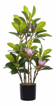 Táto stredne veľká umelá magnólia skrášli každú miestnosť, v ktorej sa bude nachádzať. Veľké listy a ružové kvety pripomínajú tie ozajstné a najkrajšie vyniknú vo vašej obývačke, jedálni či kuchyni. Rastlina sa ľahko čistí a je nenáročná na starostlivosť, pretože ju nie je nutné zalievať alebo presádzať.
