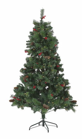Pripravte sa na Vianoce a vyzdobte si domov týmto pôvabným stromčekom. Vetvy zo syntetických materiálov zaručujú jednoduché rozloženie a skladovanie. Sú pružné, takže stromčeku dodajú plnší vzhľad. Stromček je zdobenými veľkými šiškami a bobuľami cezmíny, vďaka ktorým vyzerá ako živý. Navyše je vybavený LED svetielkami, vďaka čomu sa vyhnete problémom s rozmotávaním tých z minulého roka. Priložený kovový stojan má gumové podložky, ktoré chránia podlahu.