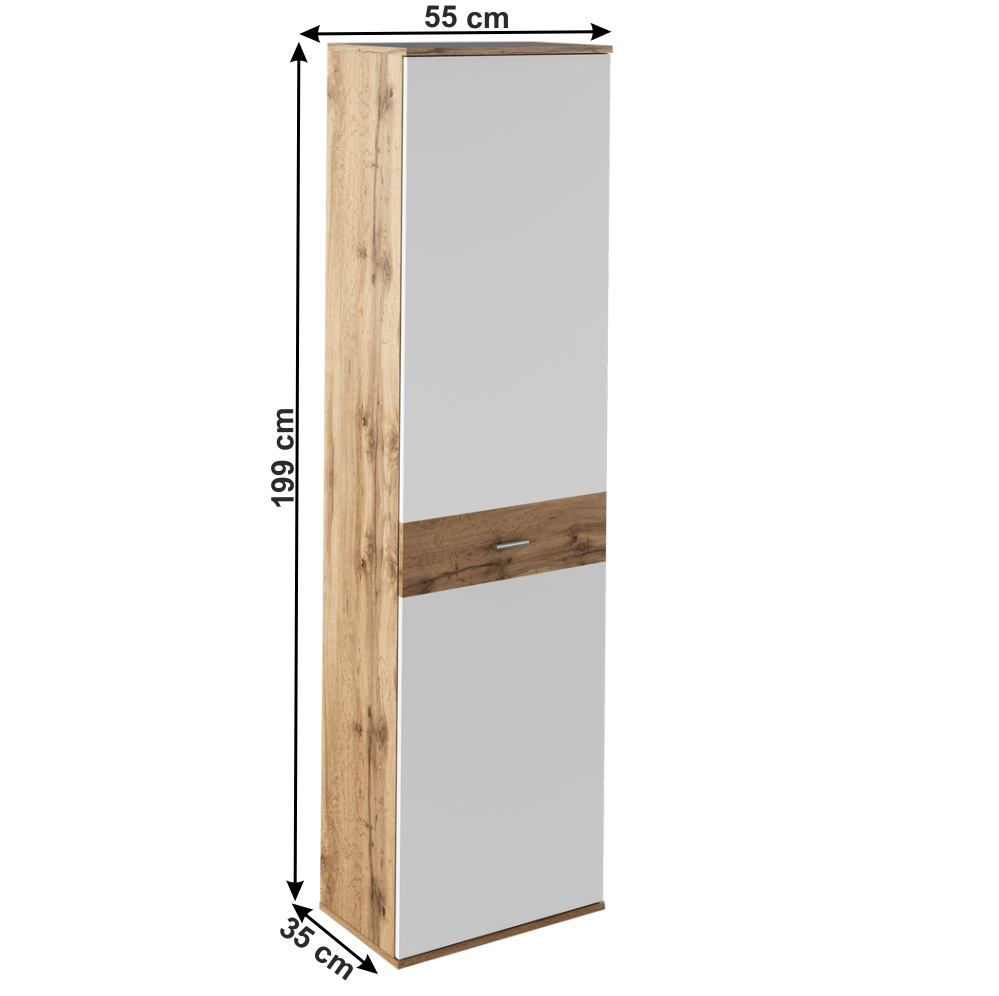 Úzka šatníková skriňa Cyrio typ 2 (dub wotan + biela) *výpredaj