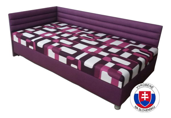Geometrické tvary sú trendom, ktorý nikdy nevyjde z módy. Ak ich milujete nielen na oblečení, ale i na nábytku, pre posteľ do detskej či študentskej izby sú skutočne správnou voľbou. Predstavte si ako oživia každú miestnosť vďaka svojmu zaujímavému vzoru a krásnym, výrazným farbám. Vaše deti budú tráviť voľný čas v príjemnom prostredí, ktoré podporí ich kreativitu a vyčarí vždy úsmev na tvári. Či už hľadáte posteľ pre dievča alebo chlapca, z fialovej, hnedej alebo čiernej varianty, si vyberie každý. Jednolôžková posteľ, váľanda Aminda spája moderný dizajn a eleganciu v jednom. Pod ložnou plochou sa nachádza úložný priestor, ktorý je prístupný vyklopením z boku. Matrac je uložený na lamelovom rošte. Na dvoch stranách postele sa nachádzajú čelá. Posteľ je postavená na vyšších nožičkách. Výška ložnej plochy je 50 cm.
