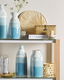 Táto váza v tvare fľaše sa stane pútavým kúskom každého interiéru. Vďaka nádhernému vzoru zobrazujúcemu vodu a modrý horizont pôsobí veľmi zaujímavo. Môžete ju použiť ako samostatný dekoratívny doplnok alebo ju doplniť kvetmi. Táto váza je vyrobená z kameniny s glazúrou a je vodoodolná. Na spodnej časti má podložky, ktoré zabraňujú poškrabaniu povrchov.