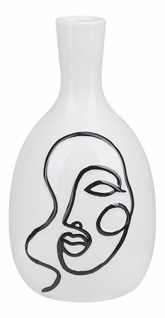 Táto jedinečná váza, ktorá bude doplnkom každého moderného interiéru, krásne ozdobí stôl, komodu alebo konzolový stolík na chodbe. Abstraktný motív tváre krásne vyniká na bielom pozadí vázy. Váza je ideálna ako dekorácia a vďaka tomu, že je vodotesná, ju môžete použiť aj na vystavenie rezaných kvetov.