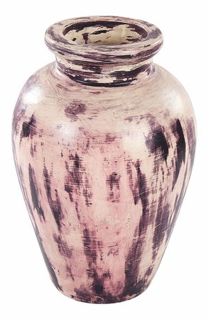 Dodajte svojmu interiéru nádych retro štýlu a vylepšite vzhľad svojho domova touto stolovou vázou. Zaujímavý efekt fialových a béžových odtieňov a ručne vyrobený dizajn je to, čo tejto váze dodáva jedinečný vzhľad. Terakotová váza je ideálna na použitie s umelými kvetmi alebo ozdobnými pierkami.