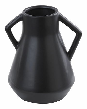 Doplňte svoj interiér novým doplnkom, ktorý zaujme všetkých hostí. Táto váza s jednoduchým dizajnom v klasickom čiernom prevedení vyniká asymetrickými rúčkami, ktoré jej dodávajú jedinečný vzhľad. Ozdobte ju kyticou čerstvých alebo sušených kvetov a skrášlite si obývačku alebo spálňu nádhernou dekoráciou.