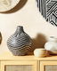 Táto štýlová váza určite upúta pozornosť vašich hostí. Je určená na použitie so sušenými alebo umelými rastlinami, ale bude vyzerať skvele aj bez kvetov. Je ručne vyrobená z odolnej terakoty a jej biely pruhovaný vzor je vyrobený zo skla. Vďaka farebnej kombinácii bude vyzerať výborne interiéroch zariadených v rôznych štýloch – od moderného až po retro.