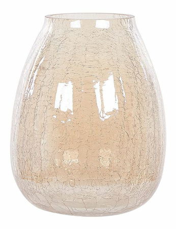 Osviežte vzhľad svojho interiéru touto jedinečnou vázou na kvety. Je vyrobená z kvalitného skla s popraskaným efektom, ktorý pôsobí veľmi efektne. Vďaka okrúhlemu a dostatočne širokému hrdlu do nej možno umiestniť aj väčšie kytice kvetov, ale možno ju použiť aj ako samostatný dekoratívny doplnok. Netradičný dizajn v svetlom odtieni béžovej vynikne v interiéroch zariadených v rôznych štýloch.