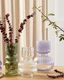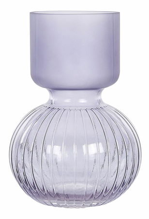 Ak hľadáte originálne doplnky do interiéru, táto váza na kvety bude skvelou voľbou. Svojím vzhľadom pripomínajúcim nočnú lampu určite upúta pozornosť a všetky pohľady. Je vyrobená zo skla, takže ju možno naplniť vodou a umiestniť do nej väčšiu kyticu kvetov. Upokojujúca levanduľová farba ulahodí oku a príjemne vynikne aj v kombinácii s doplnkami v pastelových odtieňoch.