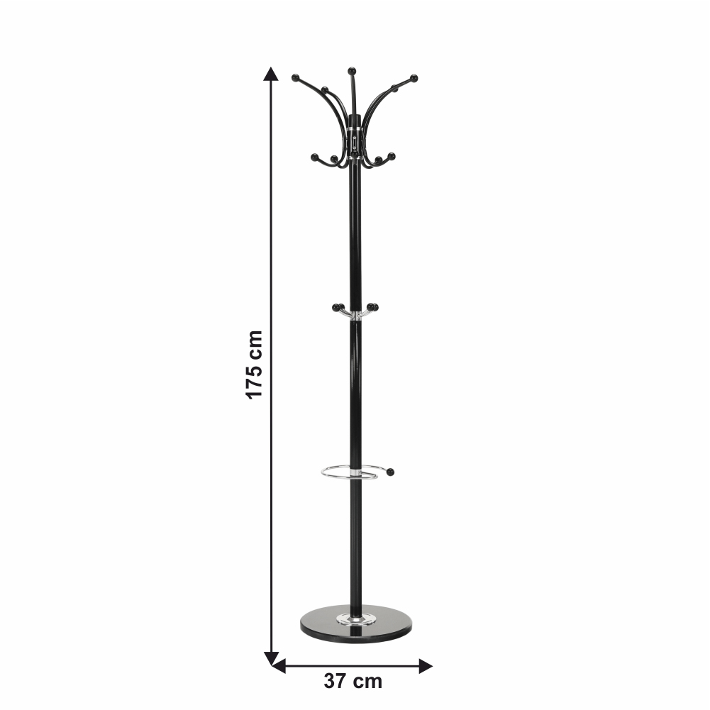 Vešiak Aleron - moderný a štýlový doplnok do vášho interiéru. S výškou 175 cm a hĺbkou 37 cm má dostatok priestoru pre zavesenie vašich obľúbených kúskov. Jeho čierny dizajn s kombináciou kovu a mramoru dodáva vášmu interiéru sofistikovaný vzhľad. Vešiak Aleron je multifunkčný a môže byť použitý na zavesenie zvrškov, sušenie bundy alebo zavesenie klobúka. Jeho moderné materiály zaručujú trvanlivosť a dlhú životnosť. S vešiakom Aleron budete mať vždy poriadok v štýle!