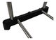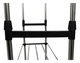 Praktický dvojramenný pojazdný vešiak vyrobený z nerezového kovu a čiernej plastovej základne, priečne spevnenie je tvorené doplnkovými tenkými tyčkami umiestnenými medzi ramenami, ktoré majú dodať stabilitu.