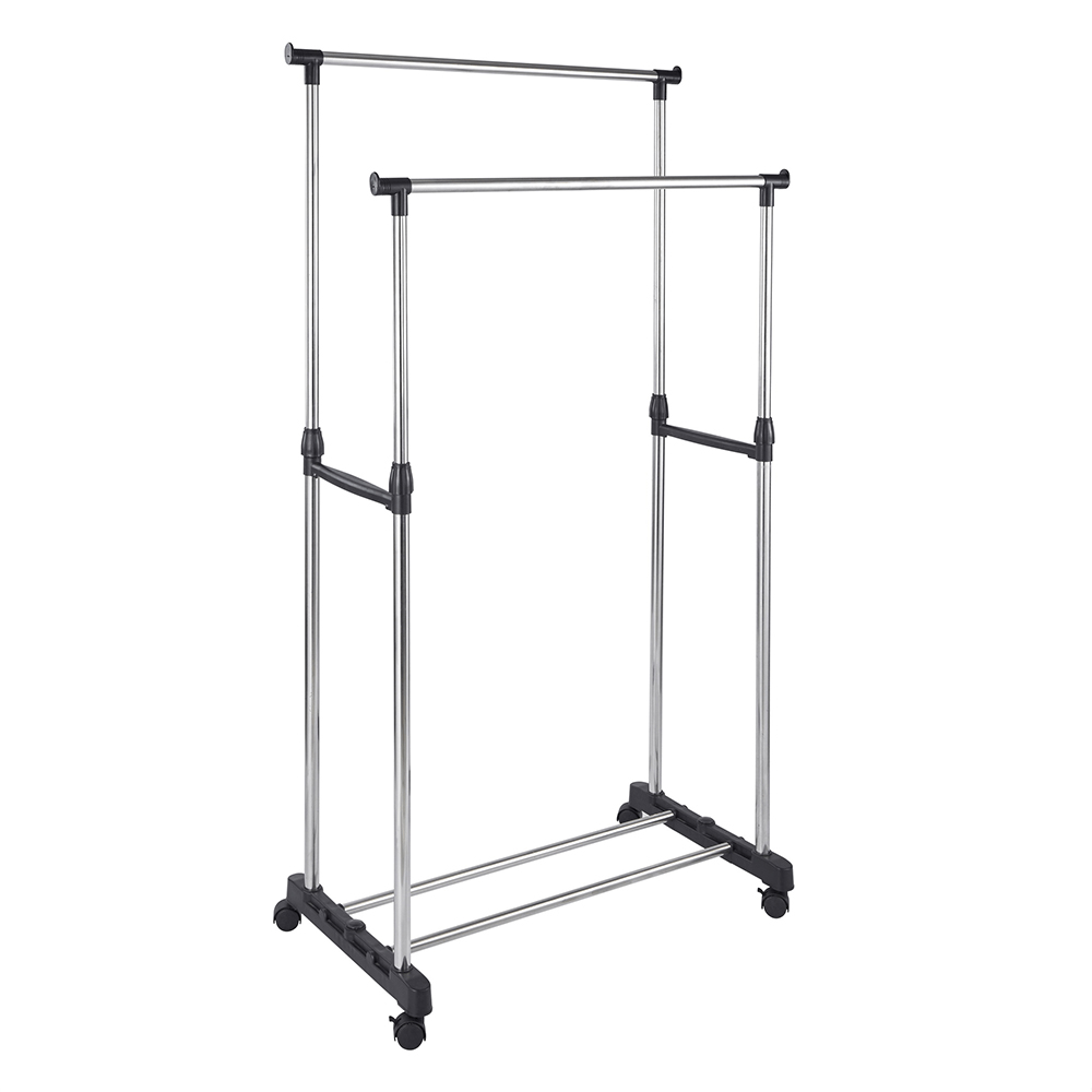 Dobrý prehľad vo vašom oblečení vám umožní práve vešiak Talton. Za svoj nenáročný, jednoduchý dizajn vďačí nehrdzavejúcej oceli v striebornom farebnom prevedení. Vešiak ponúka dve tyče na zavesenie oblečenia v rôznych výškach. V spodnej časti nájdete praktickú policu napríklad na topánky, ktorú tvoria dve tyče. Stojan na oblečenie je plne pojazdný vďaka kolieskam, dve z nich sú vybavené brzdiacim systémom.