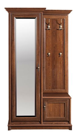 Nádherná vešiaková zostava archaického charakteru s dvierkami so zrkadlom na ľavej strane a s vešiakmi a malou skrinkou na pravej strane. Bude naozajstnou ozdobou vašich predsiení.