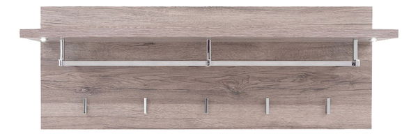 Jednoduchý dizajn, krásne farebné prevedenie a praktické riešenia - to všetko vám ponúkne tento vešiakový panel, kam si môžete odložiť vaše oblečenie a doplnky. V hornej časti sa nachádza odkladacia polička a pod ňou je kovový rám a päť praktických vešiakov na odkladanie šatstva.