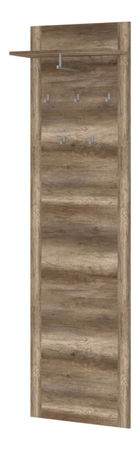 Praktický vešiakový panel vo farebnom prevedení dub canyon. V hornej časti je umiestnená polička, pod ktorou je večiaková tyč. Na zavesenie kabátov sú tu ešte menšie háčiky.