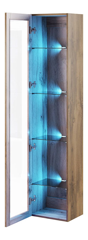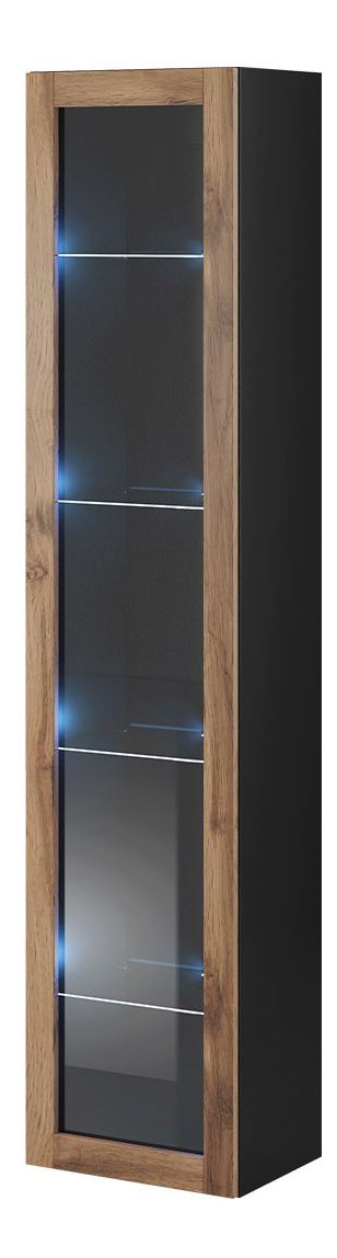 Vitrína 180 sklo Zylia (čierna + dub wotan) (osvetlenie LED modré)