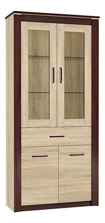 Dvojdielna vitrína s hornými, čiastočne presklenými dvierkami a dvomi sklenenými poličkami. Pod nimi je zásuvka a v spodnej časti dvoje dvierka. Ku skleneným poličkám si môžete priobjednať LED osvetlenie.