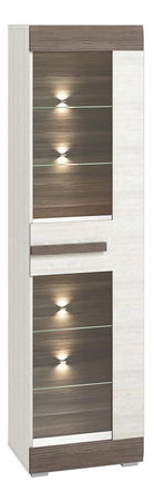 Vitrína Been 2 so svojimi rozmormi výšky 202 cm a hĺbky 42 cm ponúka dostatok miesta na usporiadanie vašich obľúbených vecí. Kombinácia borovice snehovej a MDF v novom odtieni sivej farby dodáva vitríne moderný a elegantný vzhľad, ktorý sa hodí do každého interiéru. Dve sklenené dvere a štyri police sú ideálnymi miestami na uloženie vášho porcelánu, kníh, ozdôb alebo iných dekoratívnych predmetov. Vitrína je vyrobená z kvalitných materiálov, ktoré zaručujú jej trvanlivosť a dlhú životnosť. Been 2 vitrína je praktický a štýlový kus nábytku, ktorý vám pomôže udržať vaše veci v poriadku a zároveň sa stane skvelým doplnkom do vášho domova.