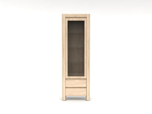 Vitrína s presklenými dvierkami a dvomi zásuvkami v spodnej časti. Do vitríny môžete umiestniť rôzne dekoratívne predmety a doplnky. Svojím príjemným farebným prevedením sa hodí do obývacích izieb, jedální alebo pracovní. Ľavé prevedenie vitríny.