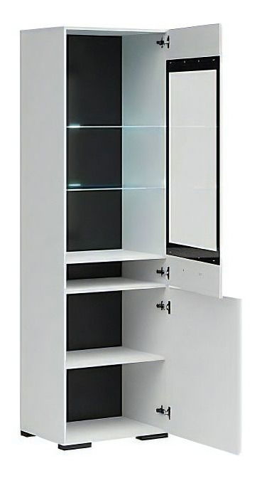 ZobraziťVitrína Assen REG1W1D/20/6 s výškou 200 cm a hĺbkou 44 cm je ideálnym doplnkom pre každú novú obývačku. Má 5 polic a je rozdelená na dve časti. Horná časť je presklenná so sklenenými policami a dolná časť má policu a dvierka so tichým zatváraním. Vďaka farebnému prevedeniu a možnosti zvýraznenia pomocou LED svetiel doprajete vášmu interiéru moderný štýl a jednoduchosť. Vitrína je vyrobená z nábytovej dosky a má systém tichého zatvárania dvierok pre zvýšenie komfortu pri používaní. Modelový rad Assen vytvorí z vášho interiéru dizajnový skvost, ktorý bude prekypovať elegantnosťou a jemnosťou. Farebné prevedenie bieleho lesku v kombinácii s jemnou čiernou je vhodné pre milovníkov jednoduchého dizajnu. Nábytok z kolekcie Assen ponúka dokonalé moderné riešenie interiéru pre vašu obývačku alebo spálňu.