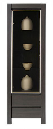 Úzka a vysoká vitrína s presklenými dvierkami a poličkami, v ktorých vyniknú vaše dekorácie alebo knihy. Vitrína má v spodnej časti dve menšie zásuvky. Elegantný štýl vitríny sa hodí do obývacích izieb, predsiení a pracovní. Pravé prevedenie vitríny.