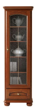 Vitrína BAWARIA DWIT 1DP s výškou 200 cm a hĺbkou 40 cm v gaštane a vlašskom orechu je úzka a vysoká, čo ju robí luxusným doplnkom pre váš obývací priestor, jedáleň alebo kanceláriu. Vitrína v archaickom štýle zdôrazňuje ozdobné prvky, ako sú zaoblené hrany, výrezy, ozdobné úchyty a široké nožičky. Môžete si do nej umiestniť vaše obľúbené knihy, dekorácie a doplnky. Vitruálnu môžete získať v lavom alebo pravom prevedení. Sektorový nábytok Bawaria je obľúbený pre svoje dekoračné prvky, ako sú hlboké výrezy v dvierkach, patinovaná mosadzná úchytová lišta, ozdobné sklo v vitrínach, hladké tvary dosiek, vlisov, soklov a nožičiek, ktoré tvoria klasický charakter nábytku. Farebné prevedenie vlašského orechu zdôrazňuje tieto dekoratívne prvky.