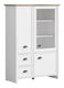 Kombinovaná vitrína v provensálskom štýle s kovovými úchytkami. Obsahuje skrinkovú časť s presklenými dvierkami. Skrinková časť s plnými dvierkami obsahuje dve plné police a dve zásuvky.