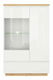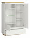 Vitrína Erla REG1D1W1S s výškou 153 cm a hĺbkou 41 cm je vyrobená z drevotriesky v dekore dub minerva a s lesklou bielou úpravou. Moderný nábytok je rozdelený na dve časti. Vitrínová časť obsahuje dve plné a jednu sklenenú poličku, pričom sklenená polička je možné osvetliť LED svetlom. Zadné čiastočne presklené dvierka vitríny sú praktickým riešením na uchovávanie dekoratívnych predmetov. Za plnými dvierkami sa nachádzajú ďalšie dve police. V spodnej časti vitríny je úložný priestor v podobe jednej zásuvky, ktorá ponúka dostatočné úložné miesto na rôzne predmety. Vhodná do obývacej izby alebo jedálne.