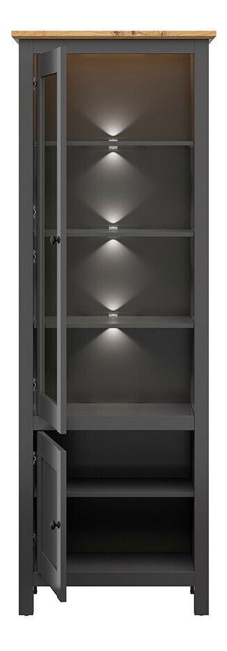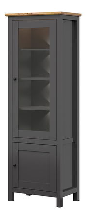 Vitrína BRW Hesen REG1W1D/20/7 (s LED osvetlením) (grafit + dub artisan)