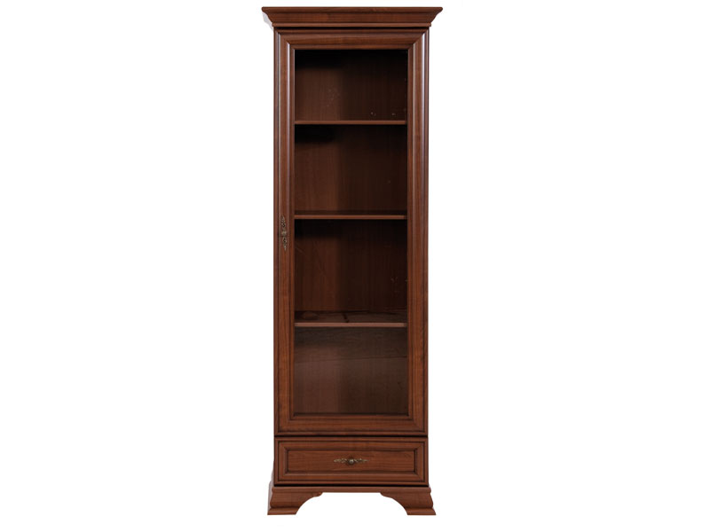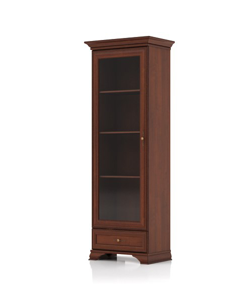 Jednodverová vitrína s čírim sklom s jednou zásuvkou.
