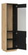 Vitrína Pont - REG1W (dub artisan + čierna matná) s výškou 200,5 cm, šírkou 58 cm a hĺbkou 42 cm je ideálnym nábytkom pre usporiadanie dôležitých predmetov a doplnkov. Jej kombinácia farieb dub artisan a čiernej vytvára elegantný a súdržný celok. Vložený detail s frézovaním a kovové úchytky sú nuansy, ktoré robia kolekciu Pont výnimočnou. Vitrína má presklenú hornú časť dverí a plné dolné dvierka. Disponuje tiež pantmi s mechanizmom tichého zatvárania, takže ju môžete používať bez rušenia ostatných. V ponuke je aj energeticky úsporné LED osvetlenie, ktoré dokonale zvýrazní doplnky umiestnené na poličke. Vitrína Pont je praktická ako úložný priestor pre oblečenie a dokumenty, ale aj ako výstavný priestor pre fotografie a rodinné suveníry.