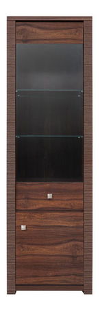 Vitrína C_REG1D1WL je vkusný kus nábytku zo série Senegal renomovanej značky BRW. Vitrína je vysoký 203 cm a v hornej presklennej časti obsahuje 2 poličky zo skla, v strednej časti sa nachádza zásuvka a v spodnej časti sa nachádzajú pravostranné dvierka s jednou vodorovnou poličkou. Vitrína máme k dispozícií v rôznych farebných prevedeniach svetlých aj tmavších farieb, je vyrobený z kvalitných materiálov, taktiež je možné si doobjednať k tomuto regálu osvetlenie.
