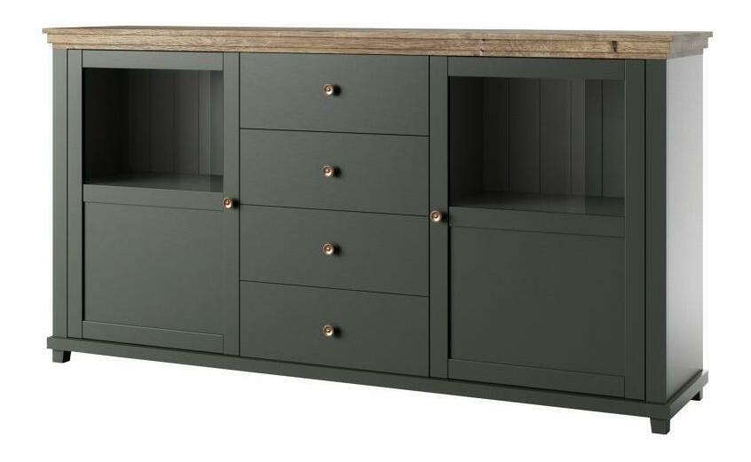 Okúzlujúci modelový rad Elvina vo vidieckom štýle. Príťažlivé farebné prevedenie v kombinácii tmavozelenej a dubu lefkas, vytvorí v interiéri pocit optimizmu a harmónie. Je ľahko kombinovateľný s prírodnými materiálmi.