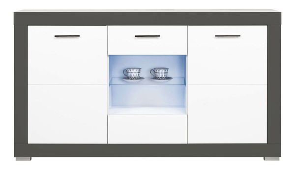 Tvarovo aj farebne čistý nábytok z modelovej rady Gray dáva miestnosti eleganciu. Je možné ho kombinovať s pestrými farbami stien a sedacej súpravy. Sektor obsahuje množstvo prvkov, vďaka ktorým si vyskladáte zostavu podľa svojich potrieb a predstáv. Biela matná farba je vhodne doplnená o grafitovú farbu. Elegantné podlhovasté úchyty dopĺňajú celkový moderný dizajn nábytku. Do vitrín je možné si priobjednať efektné LED osvetlenie modrej farby, ktoré zvýrazní predmety umiestnené vo vitrínach a zároveň po západe slnka navodí príjemnú a ukludňujúcu atmosféru v miestnosti.