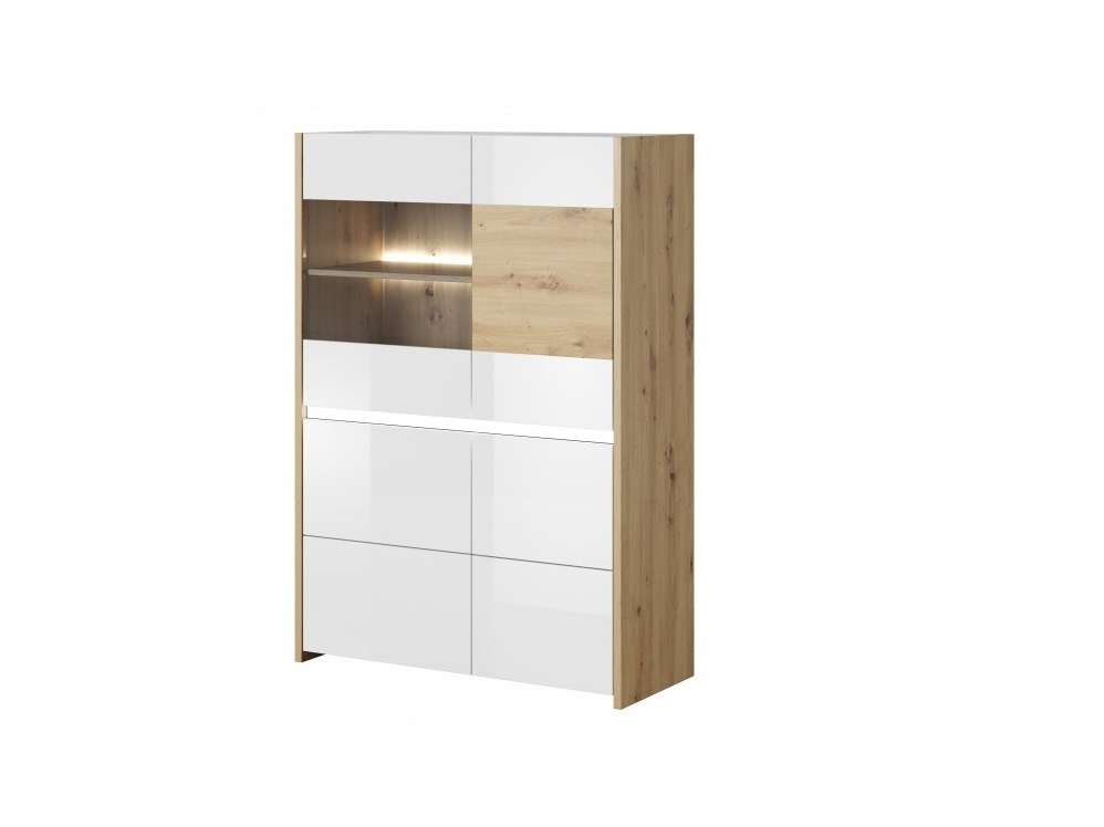 Vitrína Gubi 04 (dub artisan + biely lesk)
