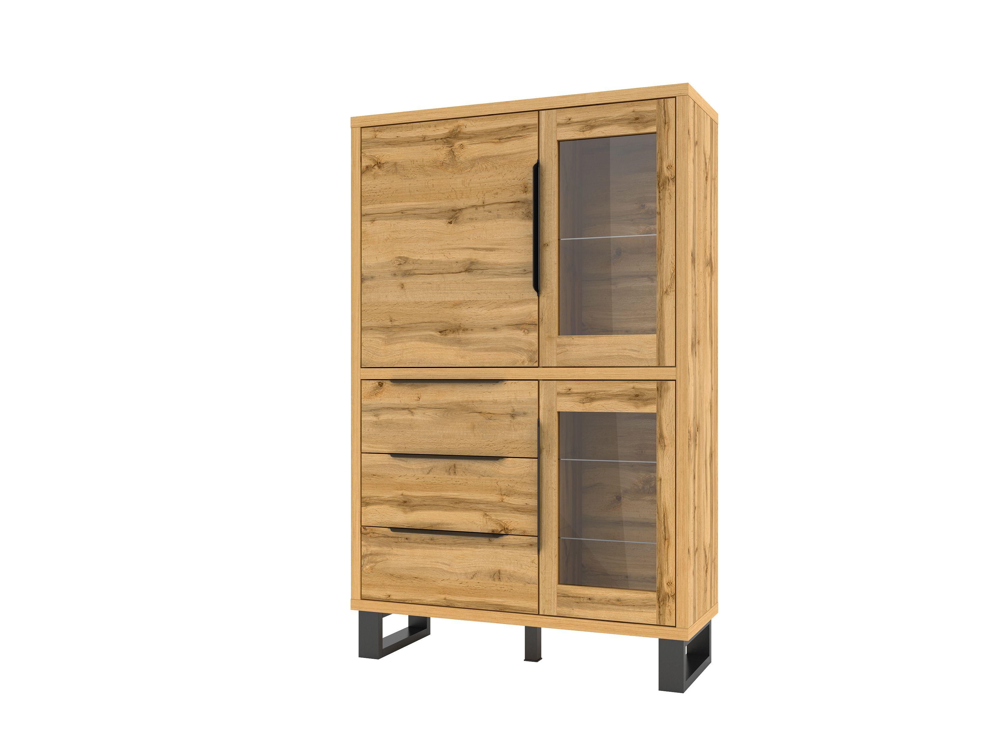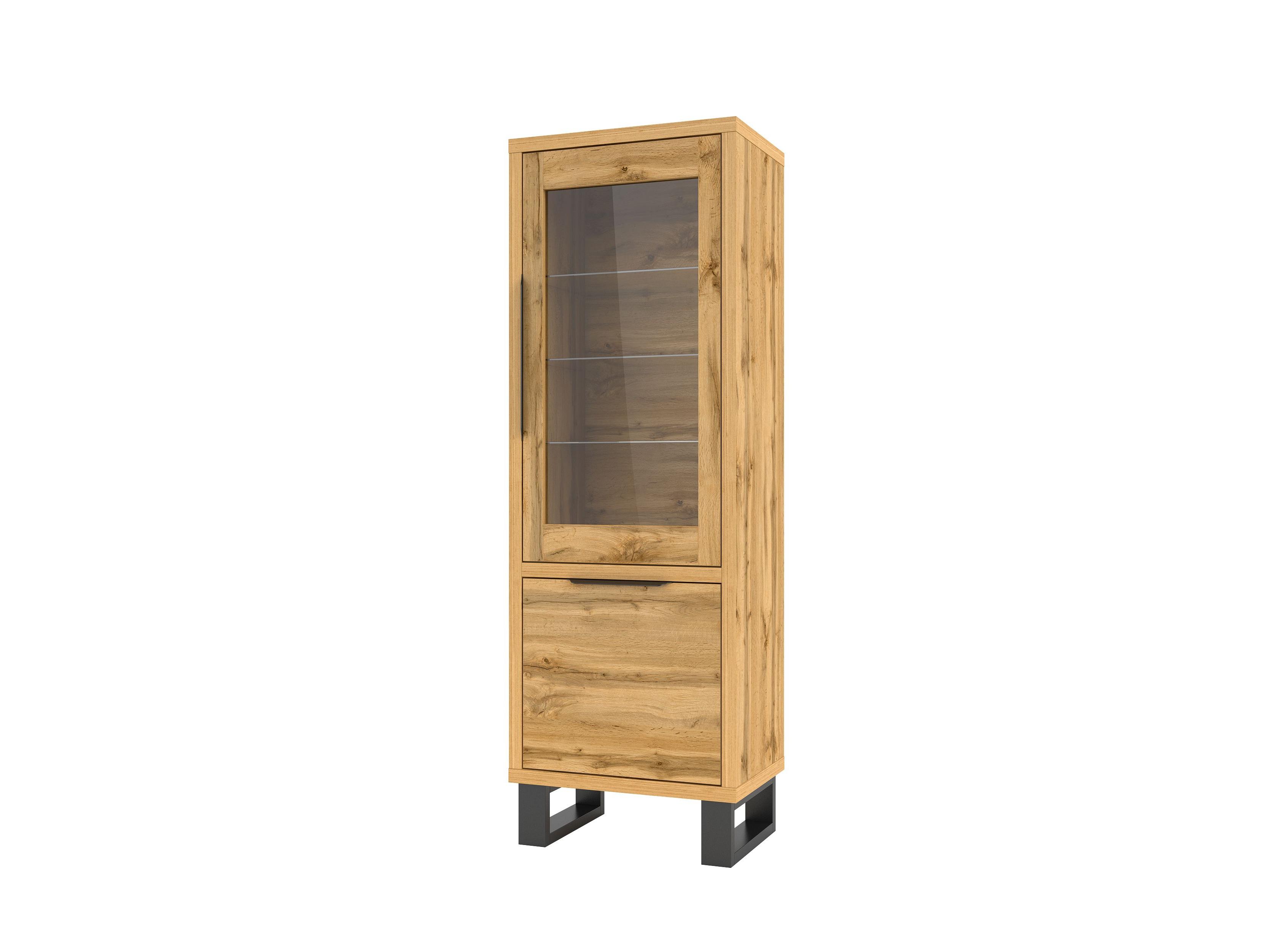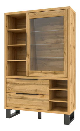 Vitrína Harley 13 je skvelým doplnkom pre každý interiér. Jej výška 190 cm a hĺbka 45 cm umožňujú dostatok priestoru pre uskladnenie rôznych predmetov. Táto vitrína je elegantná a praktická zároveň. Skrinka je rozdelená do dvoch častí - v pravej časti sa nachádzajú tri otvorené police, ktoré umožňujú vystaviť dekoratívne predmety alebo knihy. V ľavej časti sa nachádza presklenná skrinka so sklenenými policami, kde môžete umiestniť napríklad sklenené či keramické predmety. V spodnej časti sa nachádzajú dve zásuvky a dve otvorené police, ktoré poskytujú dostatok úložného priestoru. Tento kus nábytku je vyrobený z kvalitného dreva a má nádherné dubové prevedenie, ktoré sa hodí do každého interiéru.