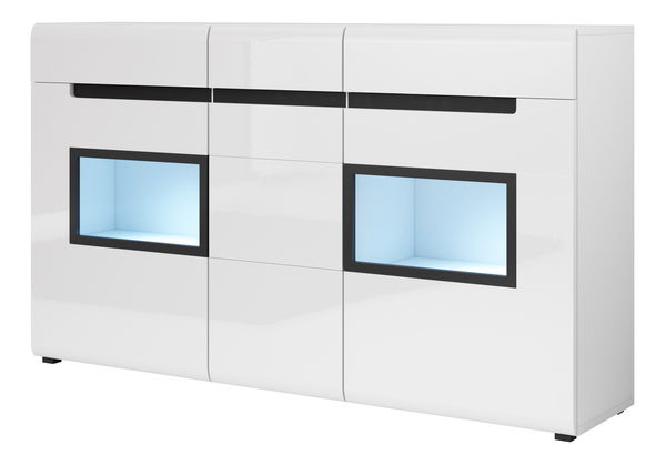 Vitrína Hayle Typ 25 (biela + biely vysoký lesk) s výškou 92 cm a hĺbkou 37 cm je trojdielna vitrína so čiastočne presklenými dvierkami. V hornej časti vitríny sú umiestnené zásuvky na uloženie osobných vecí, zatiaľ čo do políc si môžete dokúpiť LED osvetlenie pre zvýraznenie vystavených predmetov. Toto energeticky úsporné LED osvetlenie je voliteľným príslušenstvom. Konštrukcia vitríny je vyrobená z laminovanej drevotriesky/ MDF materiálu s frontom hrúbky 18 mm a korpusom hrúbky 15 mm. Úchyty sú tiež vyrobené z MDF materiálu a ABS hrúbky 0,5 mm. Polica má hrúbku 22 mm. Vitirína je balená v dvoch balíkoch, pričom prvý balík má rozmery 172,5x39x12 cm a váži 40 kg a druhý balík má rozmery 101,5x65,5x9,5 cm a váži 28 kg. Vyznačuje sa moderným dizajnom a zvýšenou kvalitou, čo ju robí vhodnou pre každú domácnosť.