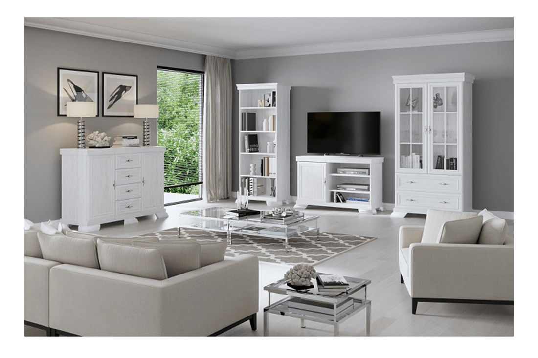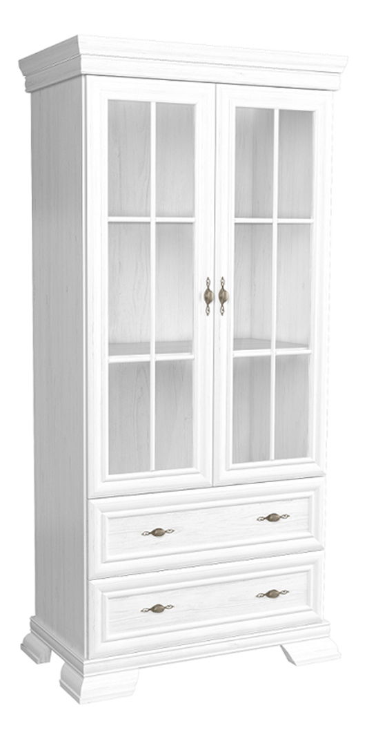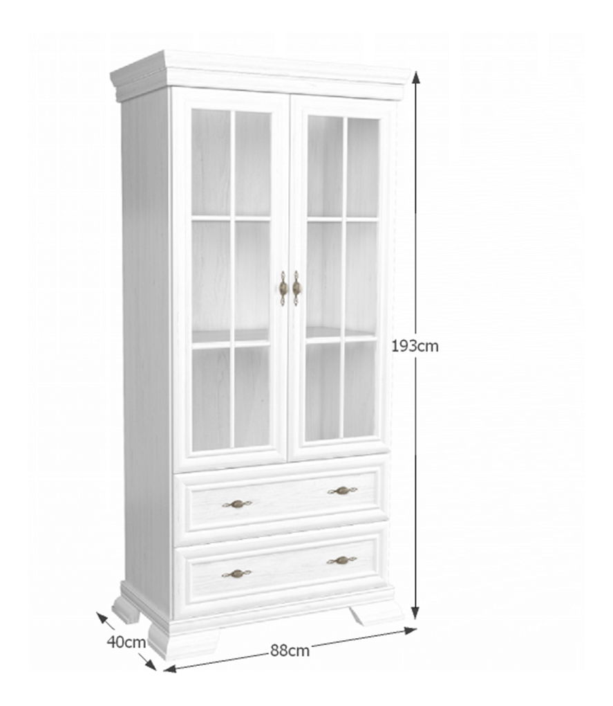 Vitrína Koral (Borovica Andersen) vysoká 193 cm a hlboká 40 cm je ideálnym doplnkom pre obývacie izby, jedálne, spálne alebo pracovne, vďaka dotykom rustikálneho dizajnu. Materiálom, z ktorého je táto dvojdverová vitrína vyrobená, je laminovaná drevotriesková doska a ozdobné lišty sú z MDF. Úchytky sú vyrobené z kovu, nohy vitríny zabezpečujú jej stabilitu. V spodnej časti vitríny sú umiestnené dva rovnako hlboké šuplíky a v hornom priestore sú tri police rozdelené na štyri úložné priestory. Dvere vitríny sú so sklom. Sektor Koral ponúka vitrínu vo farebnom prevedení Sosna Andersen. Výška spodného priestoru od podlahy je 10,5 cm. Hrúbka materiálu korpusu je 15 mm, hrúbka materiálu vrchnej a dolnej dosky je 22 mm a vitrína má celkovo tri poličky.