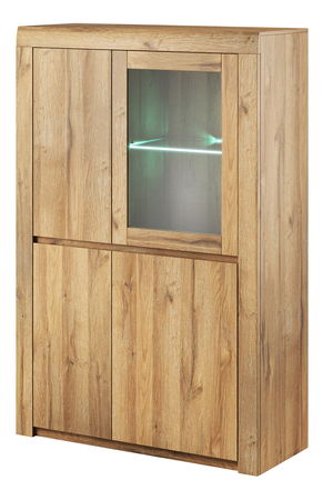 Praktická vysoká vitrína v prírodnej farbe. Bude praktická v každej miestnosti. Ponúka dostatok úložného priestoru, kde sa zmestí veľa vecí a presklené dvere vám umožnia zobraziť dekorácie.