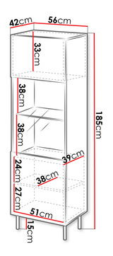 ZobraziťVitrína je ideálnou voľbou pre tých, ktorí hľadajú pohodlie a štýl. Hľadáte doplnkový nábytok na dekorácie a skladovanie? Vitrína Lasiewa 56 sa odporúča do každého štýlu miestnosti! Skvele doplní priestor. Dokonalá vitrína na knihy, suveníry a dokumenty. Nábytok vyniká jemným, frézovaným zdobením na čelách. Vitrína na nožičkách vyzerá úchvatne a ponúka veľa priestoru na organizáciu. Pomocou dvoch sklenených políc môžete vytvoriť fenomenálny dekoratívny displej. Zvyšné police plnia svoju úlohu dokonale a uložia nepotrebné predmety na prehľad. Rozmery: Šírka: 56 cm Výška: 185 cm Hĺbka: 42 cm Prevedenie: Korpus: laminovaná doska hrúbky 16 mm Čelá: laminovaná MDF doska potiahnutá 16 mm hrubou PVC fóliou s viditeľnými frézami Hrana: ABS Zadná časť nábytku je vyrobená z HDF dosky Typ skla: Polica - obyčajné sklo Predná časť - tvrdené sklo Nohy: čierny kov Žiadne rukoväte Hladké rovné pánty Systém otvárania "PUSH TO OPEN" Záruka: 24 mesiacov Informácie: Dodávka nezahŕňa zálohu. Vodič doručí vašu objednávku k prvým dverám. Výrobky sú dodávané v balíkoch s návodom na vlastnú montáž. Parametre produktu ako rozmery alebo farby sa nemenia. Tovar dostupný len v konfiguráciách uvedených v ponuke.