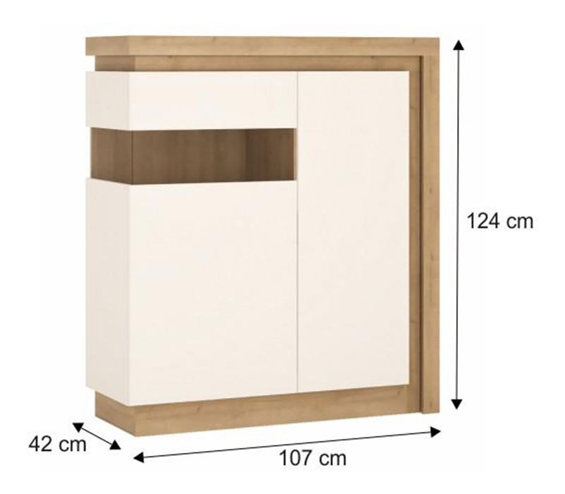 Ak hľadáte nábytok, ktorý by dodal Vášmu domovu štýlový vzhľad, vitrína z modelového radu Leonan by mohla byť tou správnou voľbou. Táto vitrína má moderný dizajn a je vybavená efektným LED osvetlením po obvode, ktoré vytvára príjemnú atmosféru. Je vyrobená z odolného materiálu, ktorý je odolný voči poškriabaniu a vlhkosti. Dvierka majú dotykové otváranie a zatváranie soft closing. Táto vitrína má výšku 124 cm, hĺbku 42 cm a farbu dub riviera + extra vysoký lesk biely. K vitríne je možné dokúpiť jednobodové alebo dvojbodové LED osvetlenie Square. Vitirína je vyrábaná z DTD laminovaného materiálu a dodáva sa v demonte.