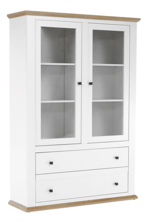 Vitrína Leoras MZ5 (biela + dub grand) je skvelým doplnkom vášho interiéru. Vysoká 180 cm a hlboká 40 cm, tento kus má rozmery 125x40x180 cm a hrúbku materiálu 40 mm. Vitrína je vyrobená z DTD laminovanej dosky s ABS hranami, a je k dispozícii v bielom a dub grand farebnom prevedení. Vytvára 3D efekt a dodáva sa v demonte. Vitrína má dve skrinky, dve zásuvky a presklenné dvere. Kovové úchytky jej dodávajú moderný štýl. Vďaka svojim vlastnostiam vám táto vitrína umožní nádherne vystaviť svoje obľúbené predmety.