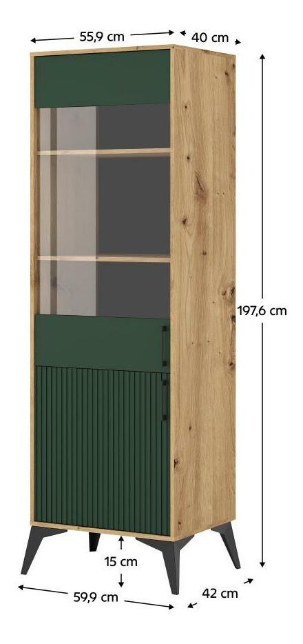 Vitrína Luvonut 2D LU9 (dub artisan + tmavozelená + čierna) *výpredaj