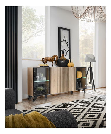 Vitrína Lyran (hikora jackson + čierna) (s LED osvetlením)