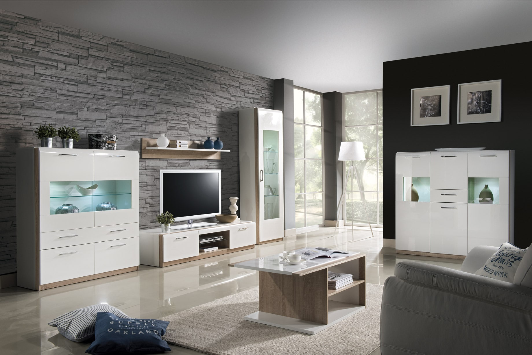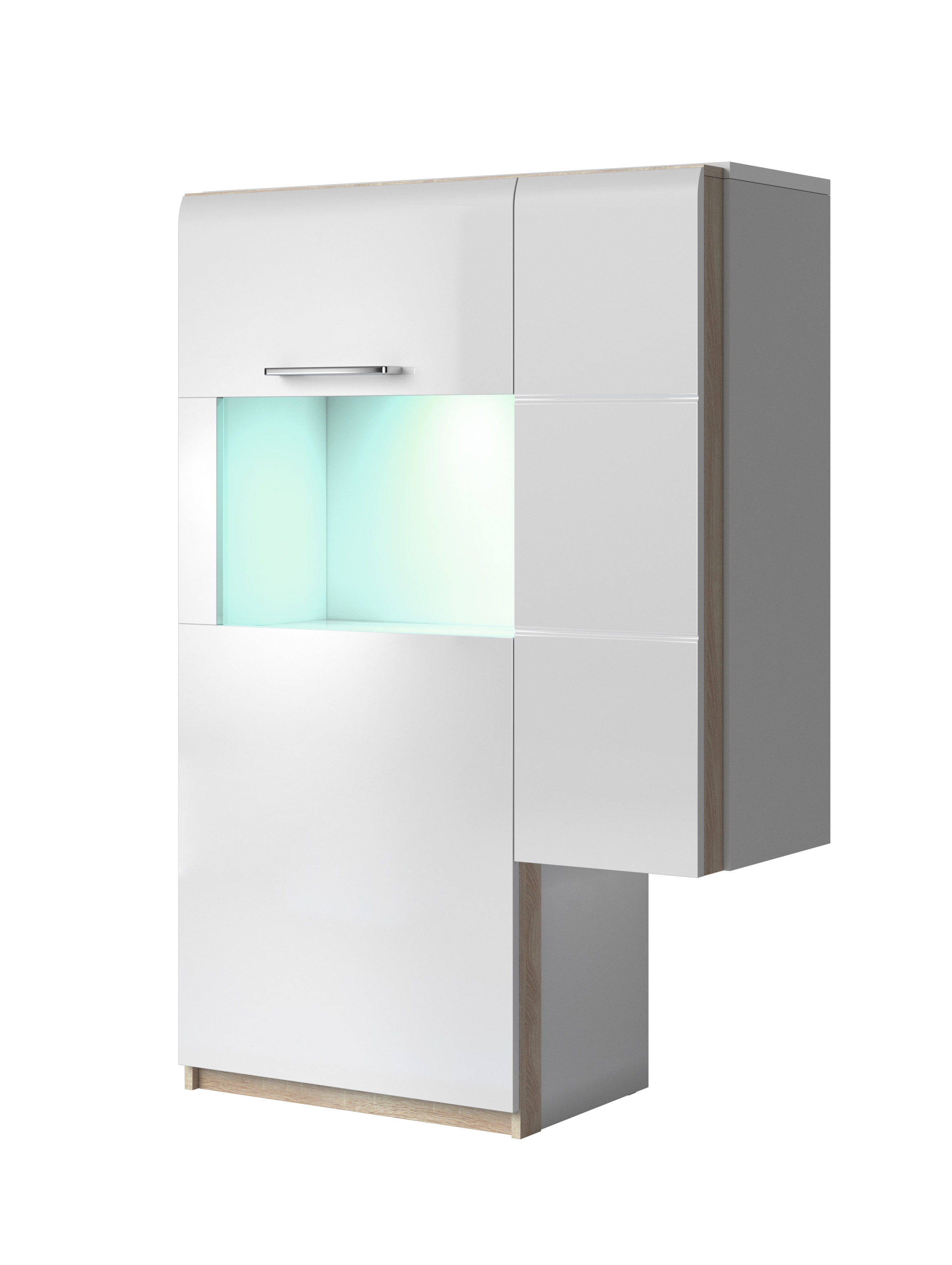 Vitrína Melia Typ 34 (biela + dub sonoma svetlá + biely vysoký lesk)